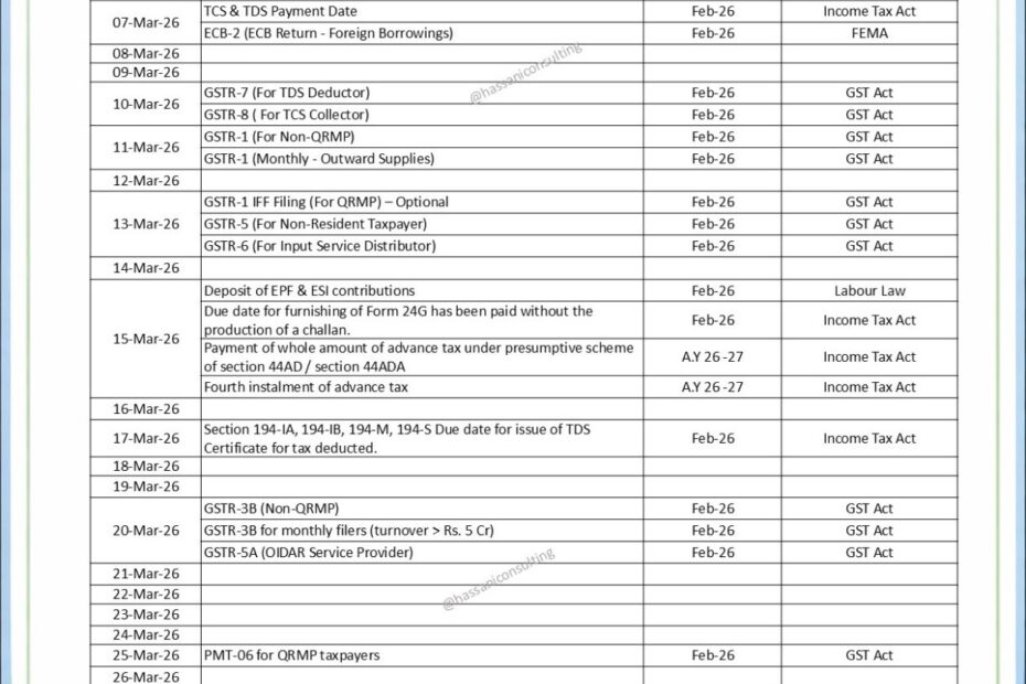 Compliance Calender – Mar -2026by BHA Team01/03/202607/03/2026Monthly Compliance Calendar 2025Monthly Compliance Calendar – March – 2026 Home
