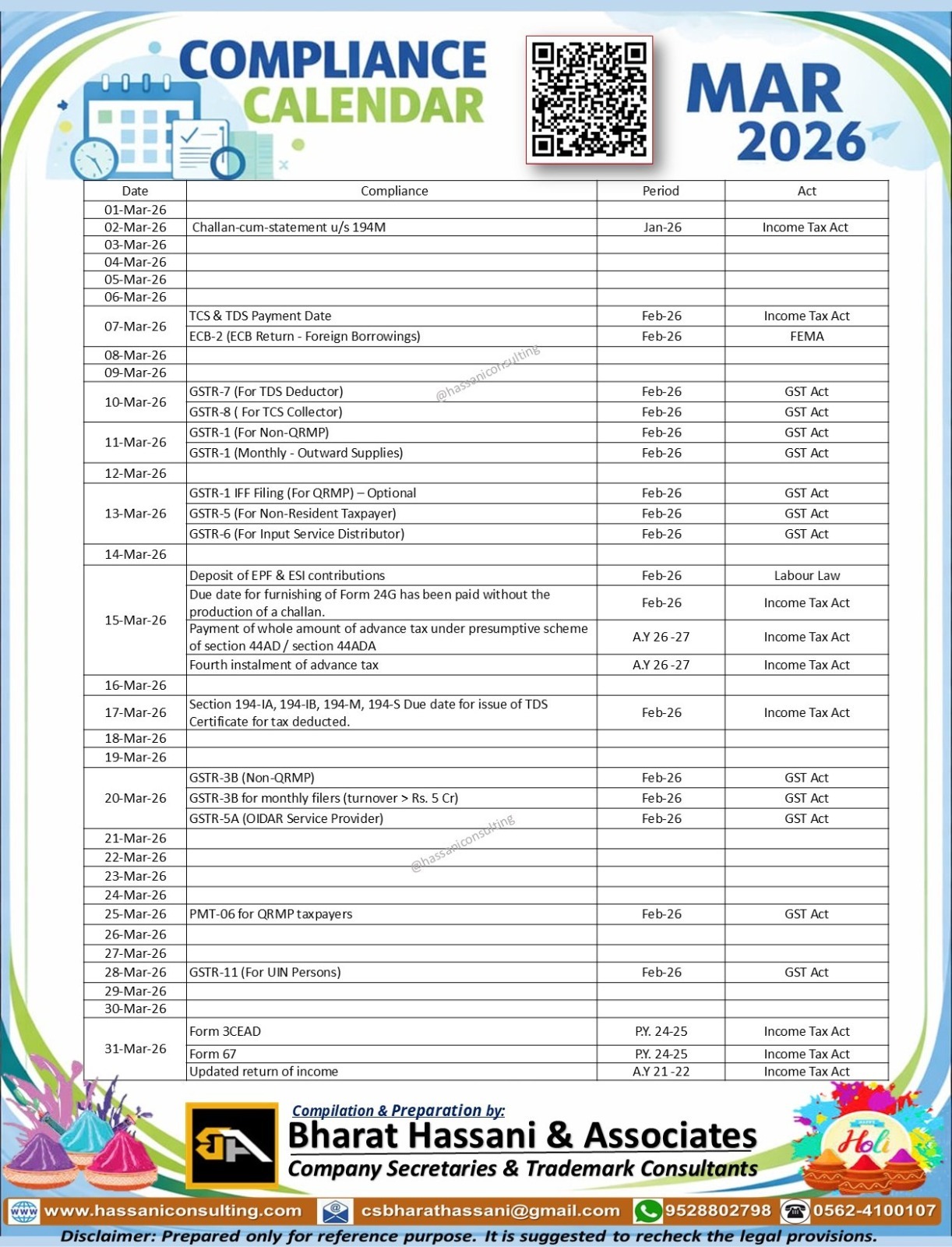 Home CC-Calendar Monthly Compliance Calendar 2025 Compliance Calender – Mar -2026